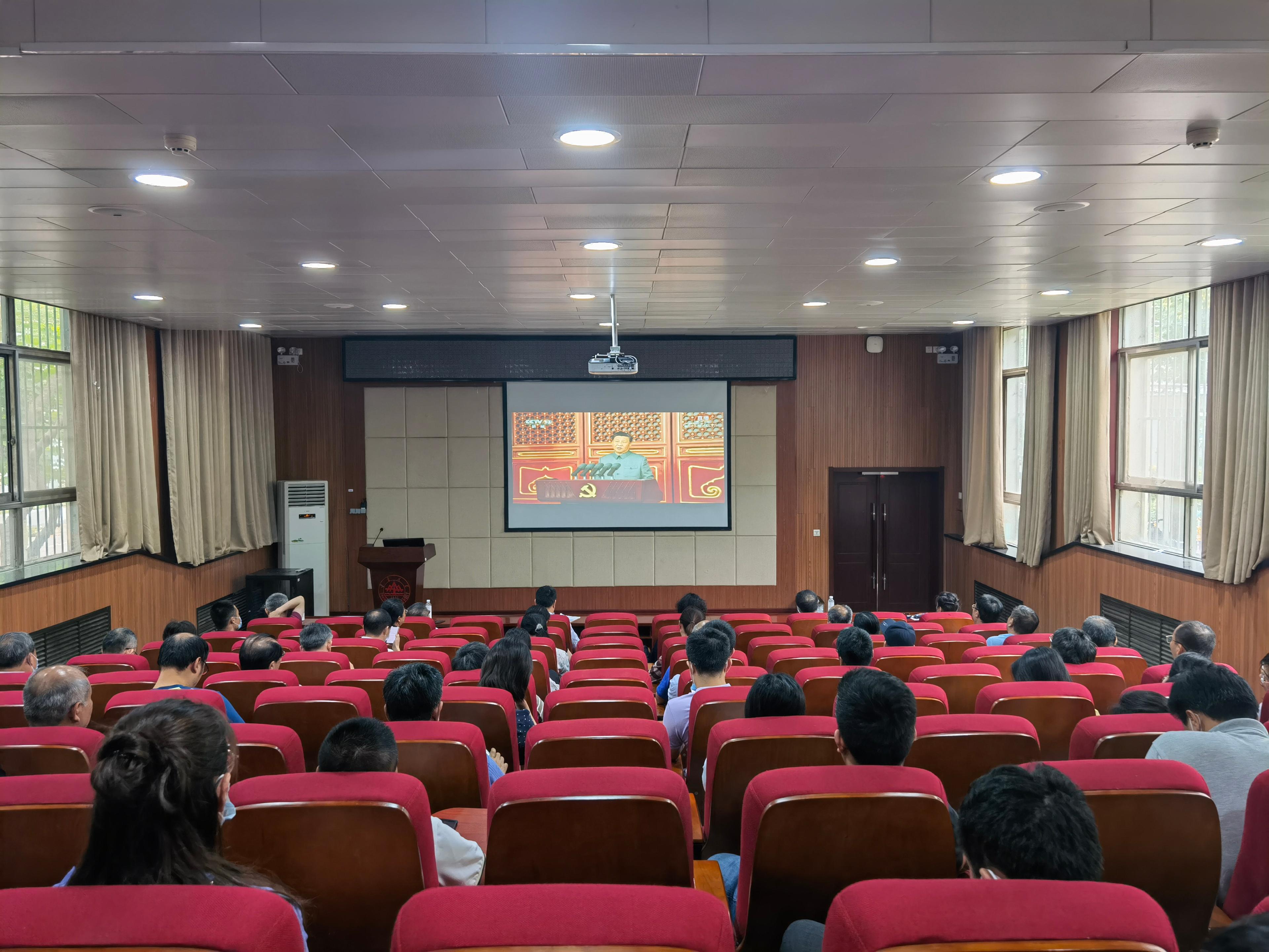 7月1日上午8时,庆祝中国共产党成立100周年大会在北京天安门广场隆重举行,中共中央总书记、国家主席、中央军委主席习近平发表重要讲话。威尼斯官网组织党员师生在学术报告厅和化学老楼102-8教室集体收看了大会直播。